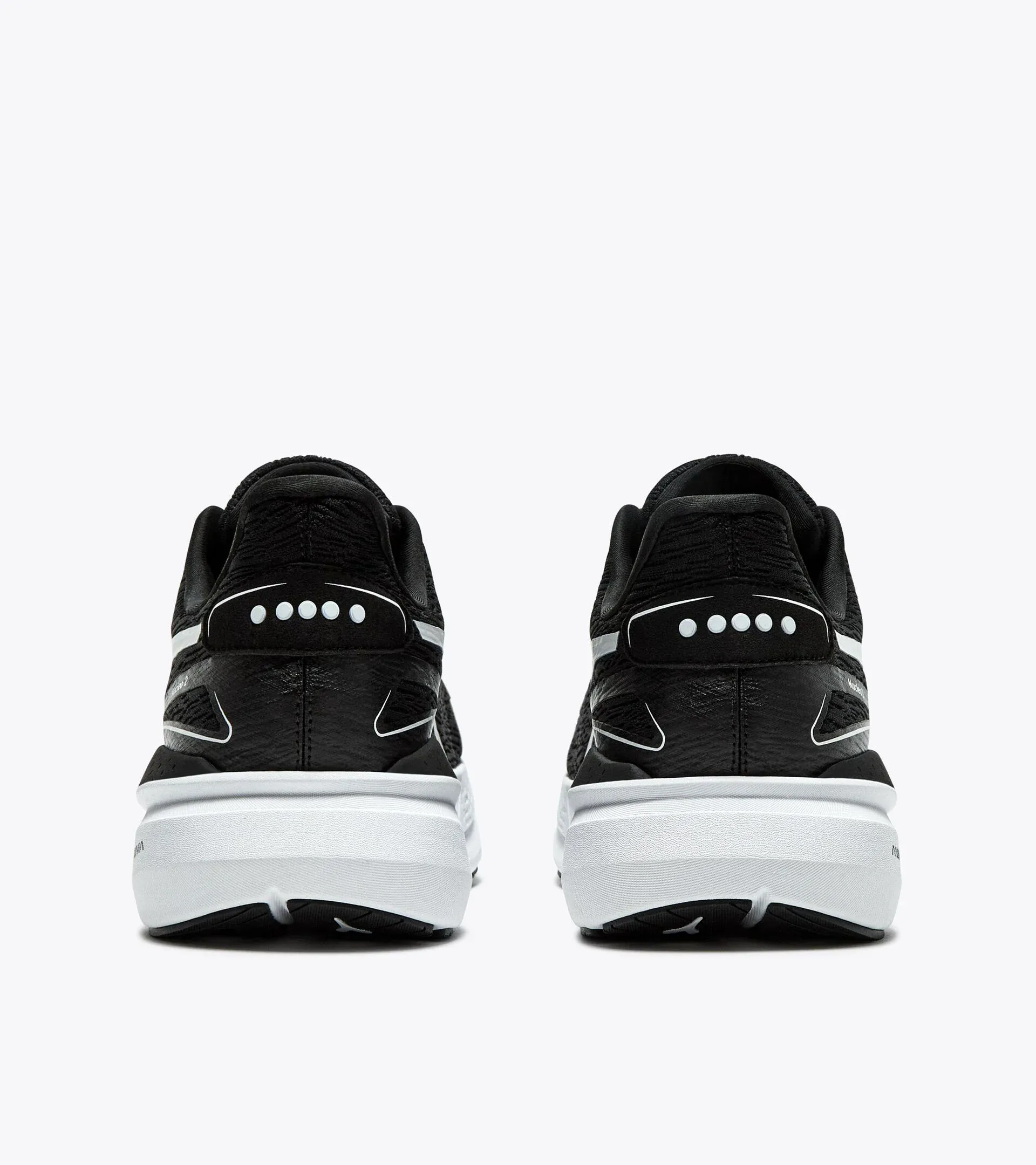 The design team worked on a new, asymmetrical design of the midsole. Two external excavated areas and a flattened internal construction contribute toimproved stability and rotation control, complemented by a less concave inner area from the heel to the medial side. The low 5mm drop and refined upper design make it the perfect companion for long runs and daily training. The upper tongue has been redesigned and is secured laterally with elastic mesh integrated into the lining construction to prevent twisting, ensuring a snug fitwithout compromising flexibility. Widening of the heel by 9mm, the midfoot by 13mm, and the forefoot by 5mm. The internal length of the heel outsole rubber on the medial side has also increased from 6 cm to 11 cm, providing improved stability and enhanced control over rotation.